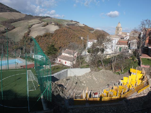 Se prima era solo un sogno, ora l’anfiteatro all’aperto di Alberona va prendendo forma e lo stato di avanzamento dei lavori è sempre più evidente. L’ultimo sopralluogo effettuato sul cantiere dal sindaco Giambattista Forgione ha permesso di constatare che gli interventi di realizzazione dell’opera procedono senza intoppi e secondo il programma. La struttura, che sarà pronta entro l’estate 2011, sta sorgendo nelle immediate prossimità del complesso comunale polivalente del Villaggio Arancione, ai piedi del campo di calcetto e di fronte alla piscina. L’anfiteatro sarà dotato anche di camerini e spogliatoi. Da zona dimenticata, l’area in questione è stata completamente trasformata negli ultimi anni fino a diventare un punto di riferimento soprattutto per i giovani di Alberona e i turisti che nei mesi estivi giungono nel borgo. Come la Terrazza Panoramica, la sala polivalente-auditorium, la piscina e il campo di calcetto in erba sintetica, anche l’anfiteatro è stato ideato e progettato per potenziare i servizi e le infrastrutture a disposizione dei cittadini, soprattutto quelli più giovani, e della crescita progressiva dello sviluppo turistico del paese. La zona che si estende ai piedi dell’antico campanile della Chiesa Madre è stata completamente riqualificata. Risalendo verso il campo sportivo, anche l’area attigua a quella che ospita il Villaggio Arancione “Arturo Petti” è stata oggetto di numerosi interventi: dai lavori che hanno interessato il parco giochi a quelli che hanno restituito l’originale bellezza alla Cappella del Calvario. In tutti i casi, si tratta di opere pubbliche realizzate limitando al necessario l’uso del cemento e con il prevalente utilizzo di materiali – legno e pietra – che rispettano le caratteristiche ambientali e paesaggistiche di un borgo immerso nel verde. Oggi, con le realizzazioni in cantiere e quelle già funzionali, un’area un tempo ‘periferica’ è diventata centrale per gli spazi e i servizi offerti.