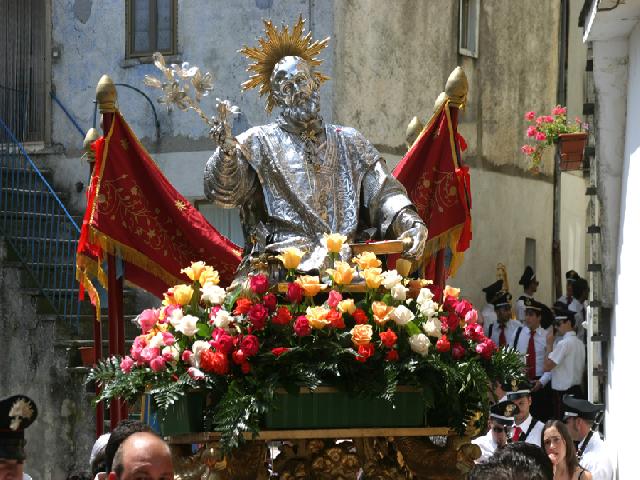 Pezzi di pane e di formaggio vengono buttati giù da un balcone che affaccia su Piazza Bartolomeo III, sulla gente piovono anche ortaggi, cipolle, fave e dagli zampilli appositamente installati cominciano a fuoriuscire latte e vino: è questo il momento più caratteristico della festa con cui Roseto Valfortore celebra, ogni 26 maggio dalla metà del XVII secolo, la propria devozione per San Filippo Neri. Sabato 26 maggio, alle ore 12, il rito si ripeterà quando la statua del patrono, al termine della processione cominciata un’ora prima, giungerà trionfalmente in piazza. E’ un momento magico, soprattutto per i bambini: mento in su e occhi al cielo, sono i più piccoli – armati di buste e zainetti – a cercare di accaparrarsi il maggior numero di pezzi di pane e di formaggio, senza trascurare le verdure che piovono dall’alto. La festa rosetana in onore di San Filippo Neri, manifestazione di fede e di partecipazione popolare che si rinnova ogni anno il 26 maggio, è entrata ufficialmente nel calendario di “Patroni di Puglia”, progetto della Regione che valorizza e promuove turisticamente il grande patrimonio di storia, arte e cultura rappresentato dai riti e dai luoghi della devozione. A Roseto Valfortore, uno dei 30 comuni pugliesi coinvolti in “Patroni di Puglia”, e al santo patrono del ‘paese delle rose’ è stato dedicato ampio spazio all’interno della pubblicazione e del sito che promuovono il progetto. Si tratta di una tradizione antichissima. Nel 1623 l’arciprete De Santis portò a Roseto il culto di San Filippo Neri, diventato poi il patrono del paese. Nella sua abitazione, trasformata in oratorio, si conserva un prezioso busto d’argento del santo. Fiorentino d'origine, San Filippo Neri si trasferì a Roma quando era ancora molto giovane. Nella città eterna ricevette l’appellativo di “secondo apostolo di Roma” per la determinazione con cui cercava di riportare sulla retta via una città sempre più corrotta e pericolosa. Fu ribattezzato dai fedeli come il “Santo della gioia”, grazie alla straordinaria capacità dimostrata nel coinvolgere i giovani, ragazze e ragazzi di strada con cui pregava e cantava. Restano memorabili alcuni suoi detti sarcastici, quali ad esempio lo “State buoni se potete”, titolo di un omonimo film sulla sua vita, o il “Ma va’ a morì ammazzato…per la fede” che gli valsero anche l’appellativo di “buffone di Dio”.