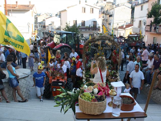 FESTA DEGLI AGRICOLTORI. Quando sabato 11 agosto la campana della Chiesa Madre, coi suoi rintocchi, segnerà le 17.30, le strade di Carlantino saranno pacificamente invase dai trattori che, con le loro ruote possenti, attraverseranno il paese in una parata gioiosa di colori. A bordo dei mezzi guidati dagli agricoltori ci saranno uomini, donne, ragazzi e bambini, tutto il “popolo dei campi” che nonostante la crisi del settore continua a far vivere col proprio lavoro un settore vitale per la nostra economia e la nostra cultura. La “Festa degli Agricoltori” a Carlantino è un evento che unisce più territori. Nel ‘paese della diga”, posto sul confine settentrionale della Puglia, arrivano in molti anche dal Molise per una tradizione che ha un altro momento suggestivo nella messa all’aperto – officiata davanti alla Chiesa dell’Annunziata – per la benedizione dei mezzi agricoli e dei raccolti. Come ogni anno la serata continua in allegria con la buona musica e la degustazione dei prodotti tipici locali preparati per l’occasione.