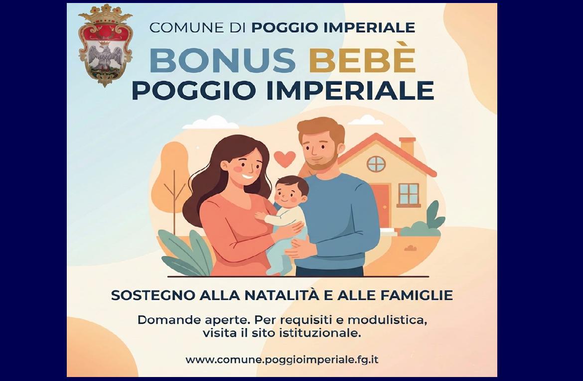 Il Bonus bebè comunale, oltre a sostenere la genitorialità, punta a rafforzare il legame tra le giovani famiglie e la rete di attività del paese, alimentando un circolo virtuoso tra welfare di comunità ed economia locale. Un tassello in più nel disegno di un Poggio Imperiale che vuole continuare a essere una piccola ma luminosa porta della Puglia e del Gargano, capace di offrire servizi, vicinanza e opportunità a chi sceglie di restare o di costruire qui il proprio futuro.