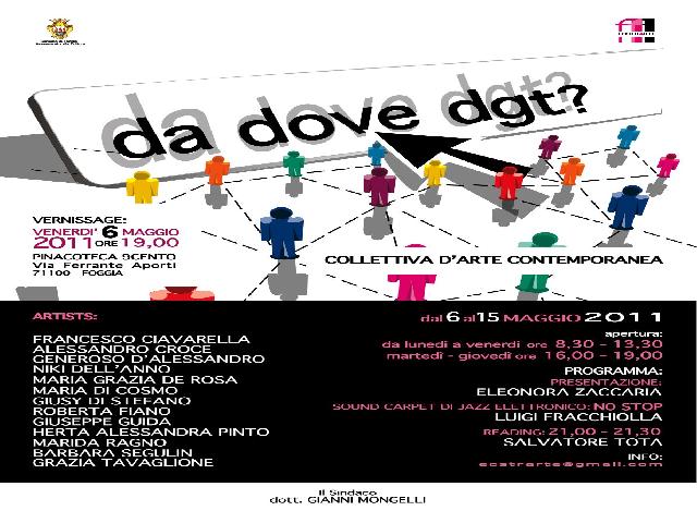 Da Dove Dgt? sarà presentata in una nuova e più ampia veste, a Foggia dal 6 al 15 maggio, presso la Pinacoteca 9Cento.