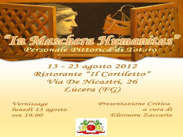 Il vernissage si terrà lunedì 13 agosto alle ore 19.00 presso Ristorante Il Cortiletto, Via De Nicastri 26 - Lucera (FG).