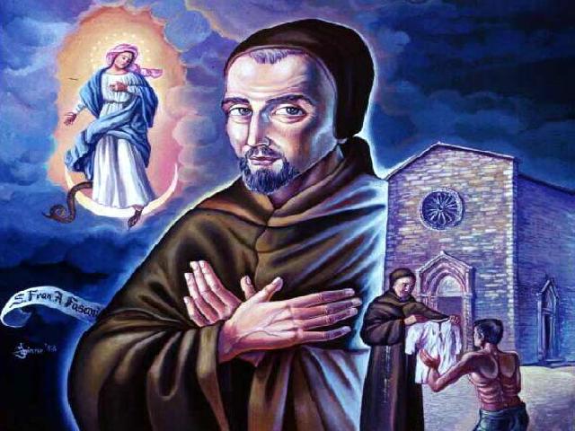 “ Cùrrite,cùrrite, Sabèlla Ucchiapirte à ccàttat, e nate nu bell mascùlon….. l’hann chiamat Ninill.” Quanta gioia e quanta luce celestiale, in quella piccola e povera casa” di sop’a tùrretta al n.124”del povero zappatore Giuseppe Fasani e della sua dolce consorte Isabella Della Monica. Era una calda serata d’estate del sei agosto dell’anno 1681,giorno di San Donato, sul soglio pontificio il Papa Innocenzo XI (Benedetto Odescalchi) e al potere, il viceré Fernando Fajardo y Alvarez de Toledo (1675/1683) rappresentante del Re Carlo II d’Asburgo (1665/1700) . A quel tempo,la nascita di un figlio maschio era una vera benedizione per il sostentamento futuro della famiglia, ma nessuno poteva lontanamente immaginare che quel giorno sarebbe diventato indimenticabile per tutte le future generazioni, per la nascita della nostra stella più fulgida “San Francesco Antonio Fasani “conosciuto come il Padre Maestro. La maggior parte delle donne del povero quartiere partecipò alla nascita del nuovo nato,aiutando la novella mamma a riprendersi dalle fatiche del travaglio del parto. Alcuni parenti il mattino seguente portarono alla puerpera, com’era d’uso, un piatto di “bròde de palummill”. La casa, così come ancora oggi si può ammirare, è composta da una sola stanza con piccolo focolaio. La muratura doppia sostiene un tetto con travi lignee ricoperte da tegole. Fortunatamente il nostro Santo nacque ai primi d’Agosto, in estate piena, dopo la trebbiatura e soprattutto prima delle feste d’agosto dedicate, ora come allora, alla nostra Patrona, Santa Maria. Alla sua nascita non soffrì certamente il freddo, ma dovette convivere con le temperature torride delle nostre afe estive che non danno certo molta tregua. La nascita di questo figlio,se da una parte aveva portato tanta gioia e speranza, dall’altra aveva dato una nuova bocca da sfamare ai neo genitori che già avevano altri due figli, di primo letto della vedova Isabella. Il mattino del dieci d’agosto, il neonato viene portato in Cattedrale per il battesimo, dai due padrini : Giuseppe De Simone e Vittoria Pagano. Il sacerdote, Don Vito Antonio Dionisio,battezza il nostro Santo alla fonte battesimale, ancora oggi visibile in fondo alla Chiesa nella navata sinistra .Dal seno materno il Padre maestro, attinse il nutrimento corporale, ma dal cuore della sua Mamma, attinse tutti i sentimenti cristiani che giorno dopo giorno gli fecero sbocciare dentro l’anima, l’attrazione verso la grazia della vocazione religiosa e sacerdotale. Il mestiere del potatore non era adeguatamente retribuito e se il papà Giuseppe non veniva aiutato nel durissimo lavoro nei campi dalla sua mamma Isabella,certamente non si riusciva a portare a casa nemmeno il necessario per mangiare. I ricchi sfruttavano i poveri contadini per un tozzo di pane nero. Le male annate gravavano sempre sui ceti più poveri e in seguito il Padre Maestro si attiverà in tutti i modi salendo e scendendo molte volte le case dei nobili di Lucera, per procurarsi il denaro necessario per i suoi poveri. Conosceva molto bene il problema, avendolo vissuto in prima persona con tutta la sua famiglia.