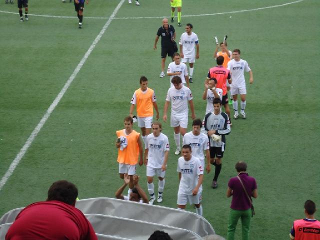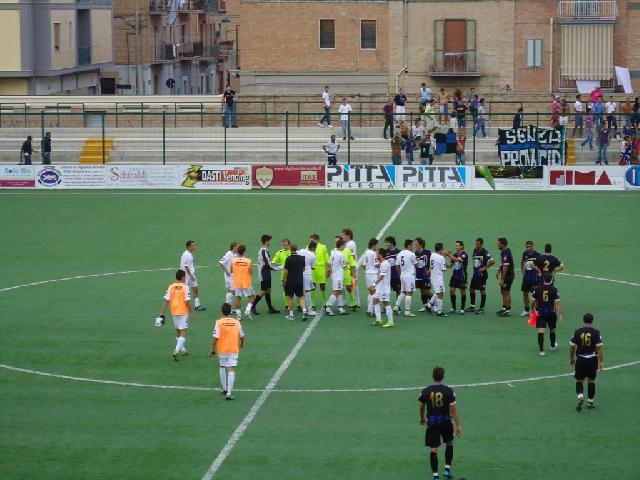 Finisce in parità 1-1- la prima sfida andata in scena al comunale fra Lucera Calcio e Bisceglie. La gara, molto combattuta e maschia, è stata continuamente interrotta dall'arbitro, il SIg. Binetti di Barletta, che ha ammonito ben otto gocatori, ed espulso il portiere lucerino Curci, protagosta indiscusso fino a quel momento. La partita si è giocata prevalentemente a centrocampo e si è dovuro aspettare il quarto d'ora della prima frazione di gioco per vedere un tiro in porta. E' il Bisceglie che si rende pericoloso su punizione, Curci sventa la minaccia in angolo. Alla mezz'ora palla gol ancora per gli ospiti. Punizione dal limite dell'area di rigore di Ingrosso, Curci respinge, la palla finisce sui piedi di Di Pinto che tira a botta sicura, salva sulla linea Masturzo che sventa il pericolo. Sul rilancio del portiere il Lucera passa. Veloce contropiede di Salinno che serve in velocità La Torre, l'attaccante si infila tra due avversari e si presenta solo davanti a De Blasio e mette la palla in rete con un bel diagonale. 1-0. Al primo minuto del secondo tempo i baresi pareggiano su calcio di rigore ai più apparso dubbio. Il portiere Curci interviene su Persia lanciato a rete, per l'arbitro è fallo da ultimo uomo, espulsione e rigore che viene trasformato da Di Pinto. La gara dopo questo episodio non ha più riservato grandi emzioni, E' stata continuamente interrotta da falli di gioco e conseguenti ammonizioni. Ci sono stati solo un paio di timidi tentativi sia da una parte che dall'altra con i baresi che non hanno saputo approfittare della superiorità numerica. Mancano a fine gara si è detto rammaricato per il risultato e i due punti persi, ma ha lodato i suoi giovani ragazzi per la gara disputata. Sull'episodio del rigore, il trainer lucerino non si è espresso in quanto lontano dalla zona dell'azione. Da rimarcare l'arbitraggio assolutamente insufficiente del sig. Binetti a cui la partita è sfuggita di mano molte volte. Giovedì di scena al comunale il Cerignola per ritorno di Coppa Italia. Si parte dl 2-0 dell'andata e sia il mister che i ragazzi hanno dichiarato che ce la metteranno tutta per ribaltare il risultato.