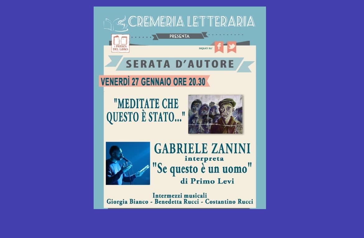 Ad interpretare e rendere vive le pagine di Primo Levi sarà Gabriele Zanini, già ospite apprezzatissimo di Cremeria Letteraria ("Leopardi&Battisti"), scrittore ligure di nascita, lunigianese di “crescita” e pugliese di adozione, scrive e recita poesia.