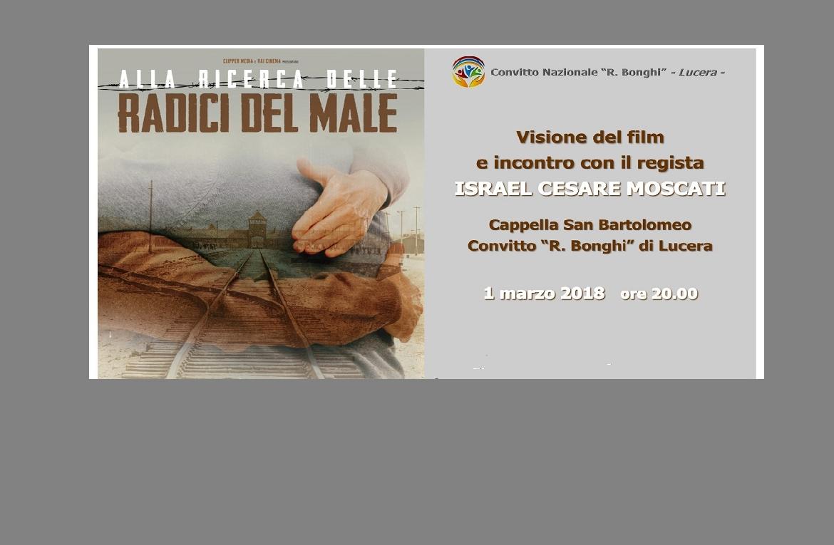 Il 1 Marzo 2018, alle ore 20:00, il regista Israel Cesare Moscati, testimone di seconda generazione, sarà ospite presso la Cappella di San Bartolomeo del Convitto “R. Bonghi”, dove presenterà la sua ultima opera, il film “Alla ricerca delle radici del male”. “Un viaggio nel profondo dell’animo umano, alla ricerca delle radici del male, con un messaggio finale di speranza per il futuro, nella consapevolezza che, perché il passato non si ripeta, la Storia, così come le tante e diverse storie dei protagonisti di questo film, debba essere compresa, oltre che ricordata”.