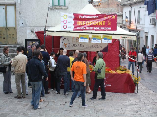UNA FESTA, LA SUA STORIA. La prima Festa del Vino, a Orsara di Puglia, fu organizzata nel 1988. Venti e più anni fa, questo appuntamento si caratterizzava come una festa sostanzialmente locale, basata sulla valorizzazione delle tipicità gastronomiche e vinicole che gli orsaresi producevano soprattutto per l’uso familiare o comunque per un consumo limitato alla domanda interna del paese. Già allora, però, la Festa del Vino rivelava l’ambizione e l’esigenza della Comunità Orsarese di valorizzare e di promuovere la vocazione alla qualità alimentare e all’accoglienza. La Festa del Vino è stata una delle prime e più rilevanti occasioni per la Comunità Orsarese di prendere coscienza del valore assoluto rappresentato dalla capacità di produrre cose buone, di ottima qualità, per far apprezzare e far conoscere Orsara di Puglia.