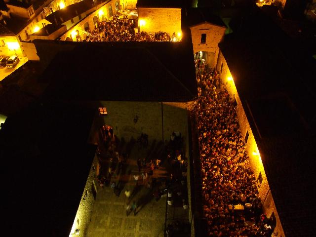 Il successo dei tre giorni di manifestazione è efficacemente documentato dalle fotografie che gli organizzatori hanno pubblicato in questi giorni sul web e dai commenti entusiastici di chi ha partecipato a concerti, stage, gemellaggi e convegni. Nelle tre serate del 26-27 e 28 agosto, centinaia di giovani hanno riempito il cuore medievale della città, dando un significato evidente e concreto a quel “borgo della musica” che è stato il tema del Terravecchia in Folk 2011. Quindici ore di musica, 10 concerti, oltre 50 artisti presenti tra palco e stage e, ancora, i corsi gratuiti per imparare a cantare, danzare, costruire piccoli strumenti musicali, apprendere i segreti della musica e della danza popolari: sono soltanto alcuni dei numeri che danno un’idea di come il festival di Pietra sia ormai diventato un appuntamento tra i più qualitativi nell’estate pugliese, tanto da meritare la promozione del proprio progetto culturale all’interno di Daunia Felice, la rete dei festival della Daunia sostenuta dalla Regione Puglia. Un successo…ecosostenibile: il ricavato di Terravecchia in Folk, infatti, sarà utilizzato per acquistare specie arboree e arbustive autoctone da piantare nelle aree verdi urbane del borgo e nelle zone immediatamente adiacenti con lo scopo di assorbire l’anidride carbonica immessa nell’atmosfera. Terravecchia in Folk, dunque, si ripropone non solo come l’evento di ‘punta’ dell’estate petraiola ma anche come manifestazione attenta a coniugare la promozione del territorio con la valorizzazione del patrimonio ambientale e culturale. Nel 2010, gli incassi del festival furono impiegati per la ristrutturazione del portale d’ingresso del Palazzo Ducale. Quest’anno, il tema della tre giorni è lo sviluppo del “Borgo della Musica”: il cuore della cittadella medievale ha ospitato, tra gli altri, Enzo Avitabile e i Bottari, Bisca, Nando Brusco, Conturband e tanti altri gruppi, trasformandosi in un vero e proprio laboratorio della cultura e della musica popolare. Per la sua quinta edizione, il Terravecchia in Folk è tornato a farsi in tre coniugando tutte le declinazioni del proprio legame con la musica popolare e le sue evoluzioni, dallo ska al dub, dal reggae alla world music, passando per le tradizioni musicali di Puglia, Calabria e Molise.