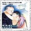 Il 25 ottobre del 2002 l’amministrazione postale ha voluto ricordare il centenario della nascita del Beato Don Carlo Gnocchi con l’emissione di un francobollo policromo. La tiratura è stata di 3.500.000 esemplari. Il francobollo su bozzetto di Rita Fantini raffigura in primo piano l’immagine di Don Carlo abbracciato ad un bambino e a destra bambino infermo di spalle, sullo sfondo in alto a destra il beato con il cappello degli alpini. Completano il francobollo la leggenda “DON CARLO GNOCCHI”, le date “1902-1956” la scritta “ITALIA” e il valore “€ 0,41”. Stampato presso l’ Istituto Poligrafico e Zecca dello Stato S.p.A. di Roma, in rotocalcografia su carta gommata fluorescente non filigranata, dentellatura a pettine 13 ¼ x 14. Il francobollo ha dimensioni di 30 x40 mm. Carlo Gnocchi nacque a San Colombano al Lambro, vicino a Lodi il 25 Ottobre 1902.Dopo la morte del padre nel 1907,si trasferì a Milano con la madre ed i due fratelli, che moriranno entrambi di tubercolosi di lì a poco. Nel 1925 fu ordinato Sacerdote. Allo scoppio della guerra, Don Carlo si arruola nel 1940 come cappellano alpino volontario. Partecipa alla guerra, dove viene miracolosamente salvato. Descrisse i giorni della spietata ritirata nelle pagine del suo libro “Cristo con gli alpini”. Fu in tali circostanze che maturò la sua grande idea di carità. Don Carlo Gnocchi è decorato di Medaglia d’Argento al Valor Militare. Tornato in Italia, si prodiga per portare conforto alle famiglie dei caduti e dei dispersi. Nel 1945 a guerra finita ebbe l’incarico di Assistente Ecclesiastico degli studenti dell’Università Cattolica di Milano. In seguito venne nominato direttore dell’Istituto Grandi Invalidi di Arosio dove accolse i primi orfani di guerra e bambini mutilati, opera che gli valse il meritevole soprannome di Padre dei mutilatini. Nacque così la “Pro Infanzia Mutilata”, che in breve tempo aprì collegi in diverse città italiane. Nel 1952 l’associazione si trasformò in “Fondazione Pro Juventute” .Nel 1955 Don Gnocchi vuole costruire un grande centro riabilitativo per i poliomelitici . Ma purtroppo Don Carlo non potrà vedere completata la sua opera ,che attualmente si compone di 21 centri di assistenza in 9 regioni italiane,34 ambulatori di riabilitazione, 2900 posti letto ed oltre 3000 operatori di sostegno. Una malattia incurabile lo stronca il 28 Febbraio 1956. Le sue ultime parole furono:” Amici, vi raccomando la mia baracca”. L’ultimo suo gesto d’amore fu la donazione delle cornee. Il 20 Dicembre 2002 Don Carlo è stato dichiarato Venerabile da S.S. Giovanni Paolo II, e il 25 Ottobre del 2009 l’arcivescovo di Milano, cardinale Dionigi Tettamanzi ha officiato la cerimonia di beatificazione su decreto firmato dal Papa Benedetto XVI. Don Carlo Gnocchi è ricordato come “l’angelo dei bimbi”.