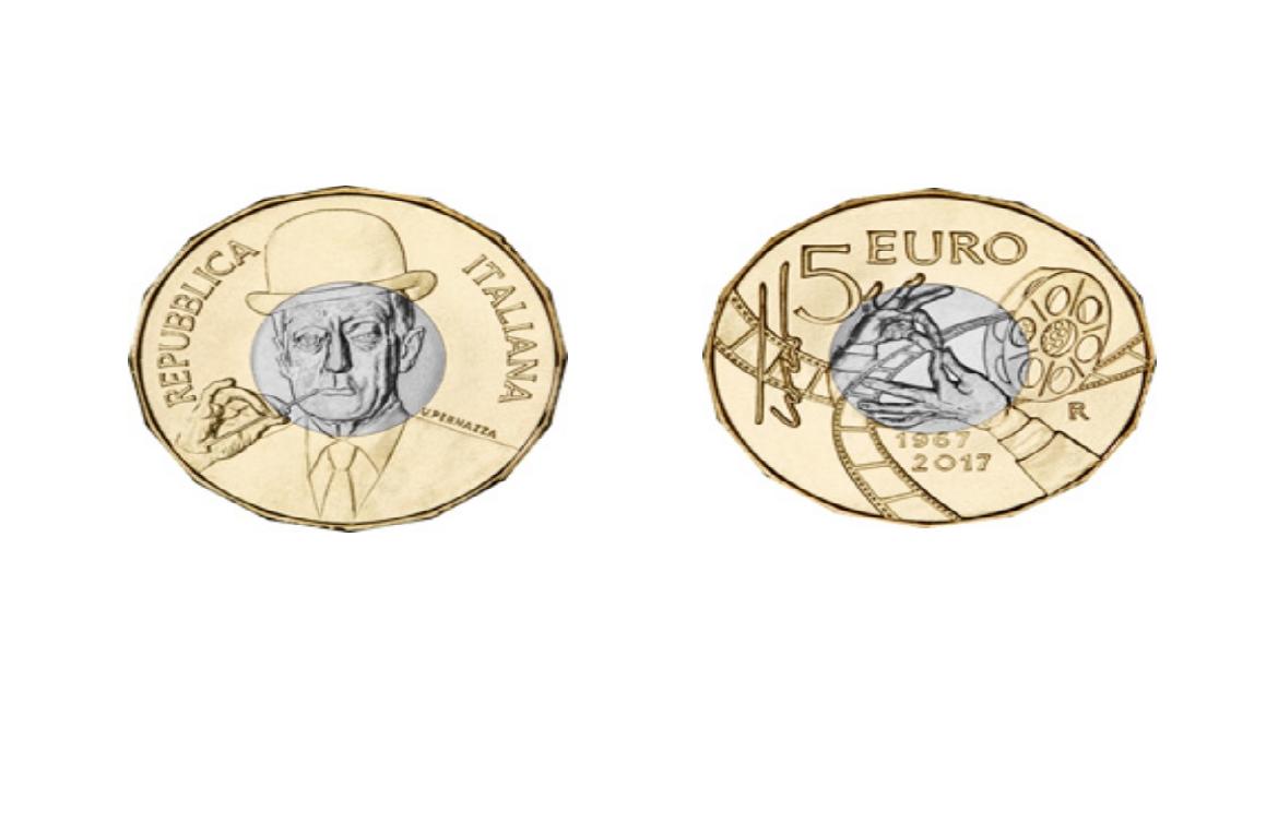 Il 18 settembre 2017 con D.M. n. 6625 del 27.01.2017, in occasione del 50° anniversario della scomparsa del grande Antonio de Curtis consegnato alla storia come “ TOTO’”, il Poligrafico e Zecca dello stato di Roma ha coniato una moneta bimetallica fior di conio dal valore facciale da €. 5,00 dal diametro 27,50 mm, peso 9,52 grammi su bozzetto di Uliana Pernazza. La tiratura complessiva è di 15.000 esemplari, costo unitario €.15,00.La moneta al rovescio mostra elementi cinematografici con al centro la caratteristica “mossa” delle mani del comico; in alto, “5 EURO”; nel campo di sinistra, la firma autografa di Totò; nel campo di destra, “R” identificativo della Zecca di Roma; in basso, “1967” e “2017”, rispettivamente anno della scomparsa di Totò e anno di emissione della moneta. Al diritto troviamo l’attore Antonio de Curtis, in arte Totò, in una tipica maschera teatrale, ritratto ispirato a una foto di Guy Bourdin presso Louise Alexander Gallery; nel campo di destra, il nome dell’autore “U. PERNAZZA”; nel giro, REPUBBLICA ITALIANA. Antonio de Curtis se ne va alle 3 di notte del 15 aprile 1967, nell'ora in cui solitamente andava a dormire. Il cuore lo tradisce a 69 anni da poco compiuti. È in casa e ha Franca Faldini accanto. Pochi giorni prima, in un'intervista, con un soprassalto di malinconia napoletana, aveva dichiarato: «Chiudo in fallimento. Nessuno mi ricorderà». Mai una profezia fu tanto falsa. Sulla bara una mano anonima depone la bombetta dell'esordio e un garofano rosso. Riposa nella sua Napoli. Aveva detto: «Vorrei morire a Napoli, mentre scrivo una canzone o in palcoscenico». Grande attore dell'eccesso, Arlecchino del Novecento, teatrante istintivo dall'inventiva estemporanea, Totò, con la sua faccia dolceamara da malcapitato, è un delizioso principe sulla scena e nella vita. Capace di coniugare perfettamente il teatro popolare e il cinema d’autore, Totò, alla stregua dei più grandi comici come Charlie Chaplin con il suo Charlot, ha creato una vera e propria “maschera” caratterizzata da una comicità originale, irresistibile, irriverente e malinconica che trova le sue origini nella grande tradizione della commedia dell’arte. Grazie Principe di essere nato e di averci lasciato capolavori che hanno fatto , fanno e faranno ridere intere generazioni.