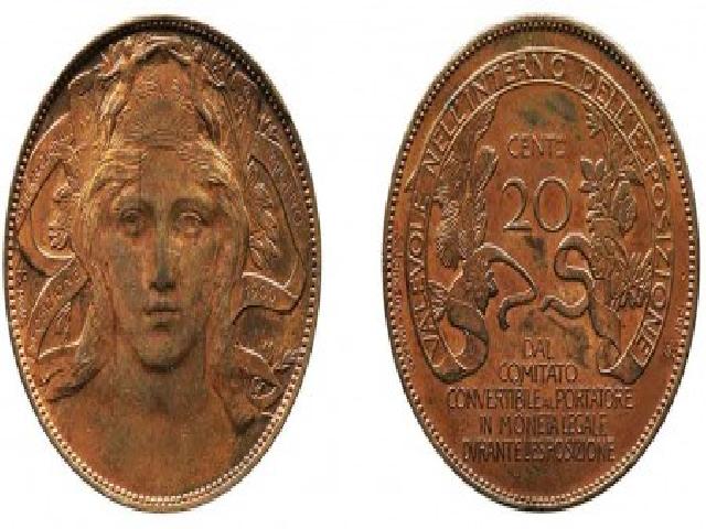 Il titolare della ditta “Johnson” di Milano , Cesare Johnson, spiegò che la figura femminile presente al diritto rappresentava l’Esposizione Universale di Milano e che le due statuette erano,la prima l’industria italiana e la seconda quella svizzera che, congiunte dal nuovo traforo del Sempione si danno la mano. Si precisa che l’Esposizione del 1906 fu appositamente organizzata per celebrare l’evento dell’apertura della galleria del Sempione. Il gettone da 20 centesimi (buono) era spendibile all’interno della Esposizione. Il gettone è in rame (cu) , con diametro di 27,5 mm è un peso di 9,08/86 gr., con contorno liscio. Il modello è opera di Egidio Boninsegna e l’incisione di Angelo Cappuccio. Grande è la bellezza di questa moneta, in puro stile liberty, che presenta al diritto la testa di Minerva galeata, la legenda ESPOSIZIONE INTERNAZIONALE MILANO 1906. Al rovescio troviamo al centro il valore nominale, in alto a semicerchio la scritta VALEVOLE NELL’INTERNO DELL’ESPOSIZIONE. In basso la scritta DAL COMMITTENTE CONVERTIBILE AL PORTATORE IN MONETA LEGALE DURANTE L’ESPOSIZIONE. A sinistra lungo il bordo la scritta S. JOHNSON MILANO e a destra il nome dell’autore.Furono inoltre coniati dallo stabilimento privato,all’altezza delle più antiche officine monetarie, cento esemplari numerati in oro di 18,2 grammi venduti a 100 lire per pezzo e mille esemplari numerati in argento di 10,85 grammi venduti a 10 lire cadauno. La maggior parte degli esemplari in oro furonoconsegnati alle Alte Personalità intervenute all’inaugurazione. Questi gettoni vengono collezionati al pari delle monete,perché oltre alla loro bellezza riportano al diritto il valore nominale di 20 centesimi. Il valore di mercato di questi esemplari di rame è alla portata di ogni portafoglio ( dai 50 ai 150 euro).