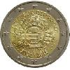Nel decimo anniversario dell'introduzione in circolazione delle banconote e delle monete in euro, i paesi dell’area euro ,hanno voluto ognuno per il proprio stato, coniare una nuova due euro commemorativa dell’evento. Al centro il disegno che simboleggia l’importanza che l’euro riveste per la vita dei cittadini (rappresentata dalle persone), gli scambi (la nave), l’industria (la fabbrica) e l’energia (le centrali eoliche). Al di sopra ad arco il nome del paese emettente; in basso le date “2002 2012”; sul bordo esterno 12 stelle a cinque punte rappresentanti l'Unione Europea. Autore: Helmut Andexlinger. Sul rovescio della moneta: L’Unione Europea, raffigurata senza confini politici a simboleggiare la coesione, su uno sfondo di sei linee verticali delimitate ciascuna da due delle dodici stelle dell’Unione; in primo piano il valore 2 EURO. A destra, in prossimità del bordo esterno, il monogramma di Luc Luycx, autore del rovescio.la moneta bimetallica in rame nichel ha un diametro da 25,75, uno spessore di 2,20 mm e un peso di 8, 5 grammi. L'euro venne introdotto gradualmente nella contabilità delle banche e delle aziende ed entrava liberamente in circolazione dal 1° gennaio 2002 come unica valuta ufficiale dell'Unione Economica e Monetaria. L'amministrazione dell'euro ha un'unica banca centrale (BCE), alla cui presidenza si alternano esponenti dei Paesi membri dell'Unione Europea (oggi l’italiano Mario Draghi). Le banconote emesse sono da 5, 10, 20, 50, 100, 200 e 500 euro; le monete (da 1, 2, 5, 10, 20 e 50 centesimi, e da 1 e 2 euro) hanno una faccia uguale per tutti (una carta geografica dell'Europa) e l'altra diversa per ogni Paese.