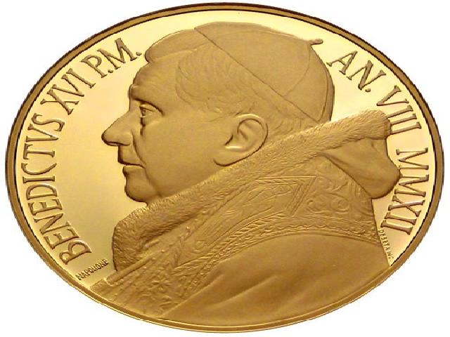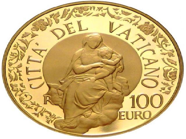 Nell’ambito della sua programmazione numismatica annuale del 2012, lo Stato “Città del Vaticano” ha emesso una moneta Proof (fondo specchio) aurea da 100 Euro nominali dedicata alla Madonna di Foligno di Raffaello Sanzio (Urbino 1483-Roma 1520). La tiratura ufficiale in cofanetto è solo di 999 esemplari. Pesa 30 grammi di biondo metallo 917/000, ha un diametro di 35 mm, coniata presso l’Istituto Poligrafico e Zecca dello Stato di Roma con bordo zigrinato. Al diritto della moneta, troviamo l’effige del nostro attuale Pontefice rivolto a sinistra, in semicerchio a sinistra la scritta”BENEDICTUS XVI P.M.” e a destra “AN. VIII MMXII”. Al rovescio , troviamo al centro che campeggia, l’effige della Madonna di Foligno realizzata dal Raffaello con intorno in alto a semicerchio “ CITTA’ DEL VATICANO” tra motivi floreali ,in basso a sinistra il segno di Zecca di Roma “R”,in basso a sinistra il valore 100 EURO. La Madonna di Foligno è un dipinto a olio su tavola trasportata sulla tela di 320 x 194 cm realizzata dal grande pittore rinascimentale urbinate Raffaello Sanzio tra il 1511 e il 1512, conservato nella Pinacoteca Vaticana. La Madonna con il bambino Gesù appare entro un grande nimbo dorato, seduta su una nuvola con cherubini, sotto a sinistra San Giovanni Battista e San Francesco d’Assisi, al centro un angioletto con in mano una tavoletta,a destra San Girolamo e la figura del committente del quadro inginocchiato. Il dipinto venne commissionato a Raffaello dal segretario del Papa Giulio II°, Sigismondo de’Conti,come ex voto per il miracolo ottenuto ( la sua casa a Foligno illesa, era stata colpita da un fulmine). La quotazione di mercato di questo bellissimo aureo si aggira intorno ai 2500,00 euro.