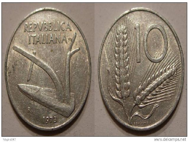 Con decreto del Presidente della Repubblica Luigi Einaudi del 31 dicembre del 1951 si autorizzava la coniazione di una nuova moneta spicciola da 10 Lire in sostituzione della più famosa 10 lire (Pegaso al diritto e Ramo d’ulivo al rovescio). Sempre nell’ottica che l’Italia ,nata dalle ceneri della II guerra mondiale, aveva come base un economia prettamente agricola si decise di coniare il nuovo spicciolo con al diritto l’aratro e al rovescio due spighe di grano. Il modello fu di Giuseppe Romagnoli con l’incisore Pietro Giampaoli. La moneta in metallo Italma ( lega alluminio ,magnesio e manganese) ha un diametro di 23,3 mm e un peso di 1,6 grammi con contorno liscio. Nel 1952 si procedette come era d’uso, alla coniazione di un numero di pezzi imprecisati con la dicitura” PROVA “ posta nel diritto a destra a fianco dell’aratro, con millesimo 1951, che hanno una quotazione di mercato, se integri e periziati ,abbastanza elevata. Sempre con lo stesso millesimo (1951) furono coniati e messi in circolazione altri 96.600.000 di pezzi. Furono coniati ininterrottamente dal 1951 al 1999, tranne per gli anni dal 1957 al 1964 (per poter smaltire le ingenti scorte giacenti nei caveau della Zecca di Roma). In tutto sul mercato circolante, sono stati immessi oltre un miliardo e cinquecentomila esemplari. La quotazione di mercato è irrilevante tranne per gli anni 1965/1966 (pochi pezzi coniati) e del 1991 che presenta il rovescio capovolto, che possono vantare qualche cosa in più . All’ingresso dell’Euro,buona parte di questa monetina è stata tesaurizzata da moltissimi italiani ,sempre più nostalgici della nostra vecchia e cara Lira.